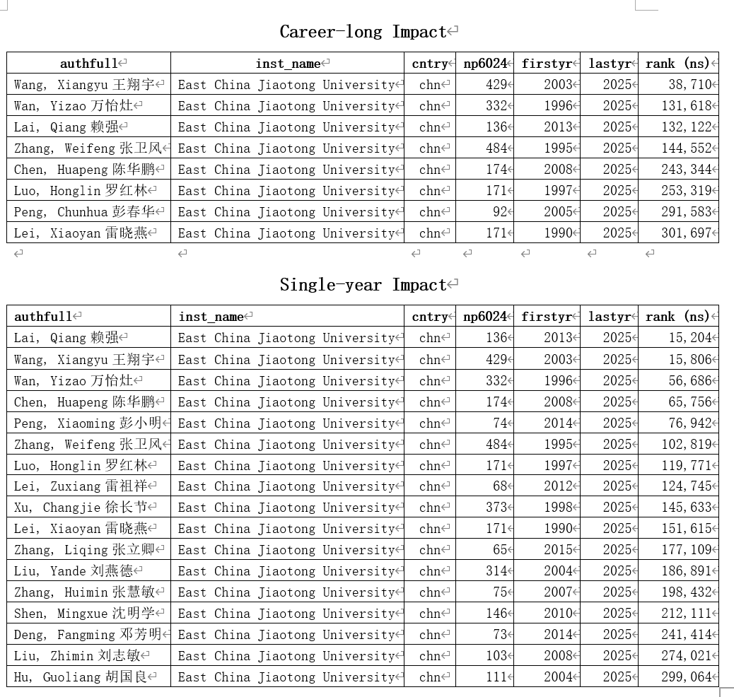 我校18位学者入选 2025 全球前 2% 顶尖科学家榜单